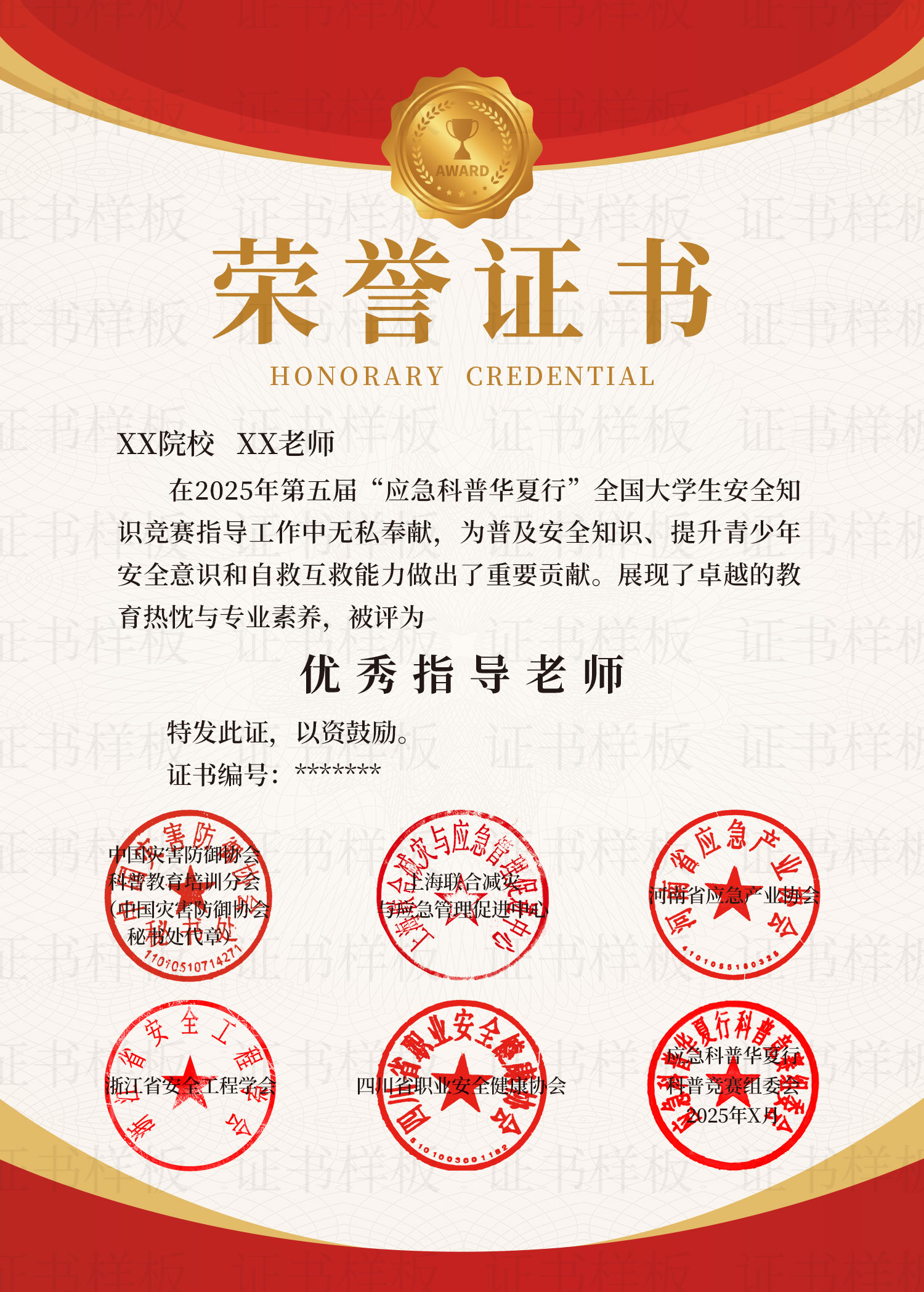 答题结束后按个人中心提示获取《“应急科普华夏行”2025年第五届全国大学生安全知识竞赛》电子版荣誉证书,可作为评奖评优证明。